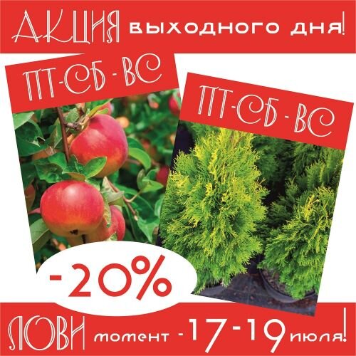 Только 3 дня! (с 17 по 19 ИЮЛЯ) СКИДКА 20 % на ПЛОДОВЫЕ и ТУИ ЗАПАДНЫЕ