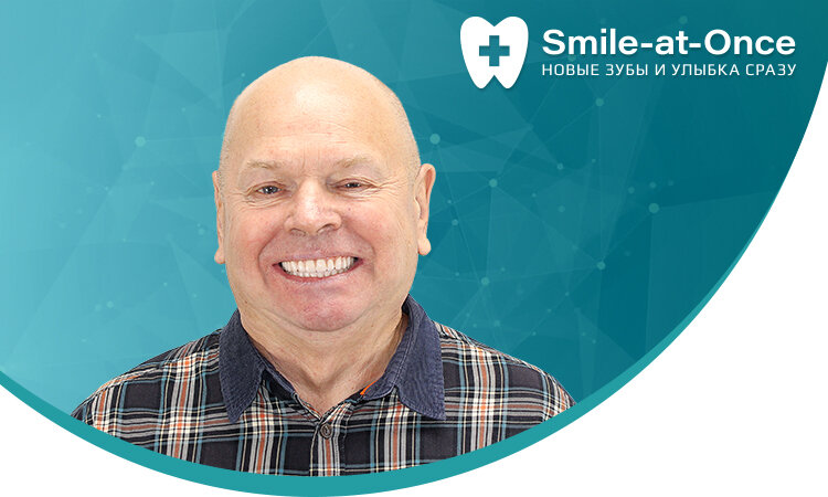 Перед просмотром фотографий до и после лечения зубов, пожалуйста, прочтите предупреждение! Ситуации в полости рта ДО обращения к стоматологу часто бывают запущенными и неидеальными. Впечатлительных просим быть морально готовыми к чтению материала. Среди главных приоритетов у пациентов в возрасте – время. А на втором месте – комфорт. При восстановлении зубов они зачастую не готовы мириться с тем, что имплантация зубов по классическому протоколу требует предварительного наращивания челюстной кости и до 1,5-2 лет реабилитации. Так и этот наш пациент пришел в Smile-at-Once в поисках быстрого и качественного результата. Проблема 👉 генерализованный пародонтит, расшатывание и выпадение зубов, оголение корней, выход из строя старых конструкций. Запах изо рта и проблемы с желудком из-за плохого пережевывания пищи. Решение 👉 удаление больных зубов и базальная имплантация на обеих челюстях с установкой 17 базальных имплантов в сумме. Несъемные адаптационные протезы на металлическом каркасе зафи