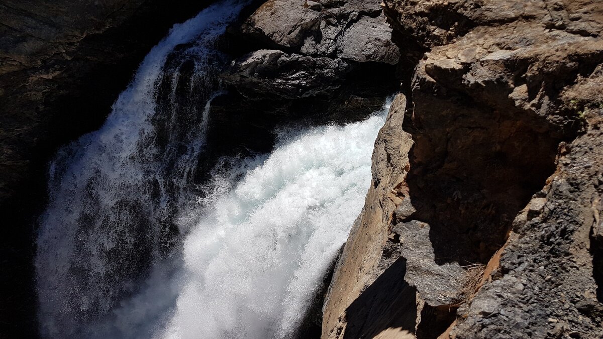 Дойдя до водопада, мы немного удивились, потому что он был не такой уж и маленький, как нам казалось. Метров 35 над водой располагалась смотровая площадка, и столб воды падал прямо около ее края.