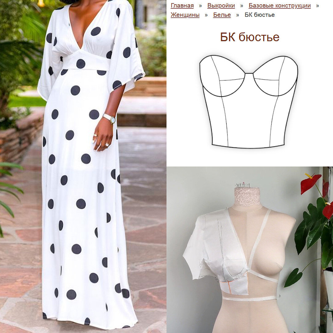 Сейчас очень много подобных подрезов в платьях, сарафанах, блузках.... Нужно оценить плотность прилегания к телу модели. Если это свободный сарафан на бретелях, то при таком вырезе и свободе облегания он будет отходить от тела если вы наклонитесь или сведёте руки. И, да его можно смоделировать на свободном стане, например, учитывая некоторые нюансы. Я хочу разобрать более сложный пример, когда вырез ложится на грудь плотно и при движении остаётся на месте. Буду моделировать по базе бюстье, она без прибавок на свободу. База на сайте строится по индивидуальным размерам. Если вы хотите дать немного свободы, можно сделать прибавки в боковом шве. ⠀ Будьте внимательны:⠀ Моделирование не простое, или может это я заморочилась слишком🙈. ⠀ Вот макетным способом хорошо, приложил, заколол, нарисовал 😂.⠀ Но это не наш вариант😊. ⠀