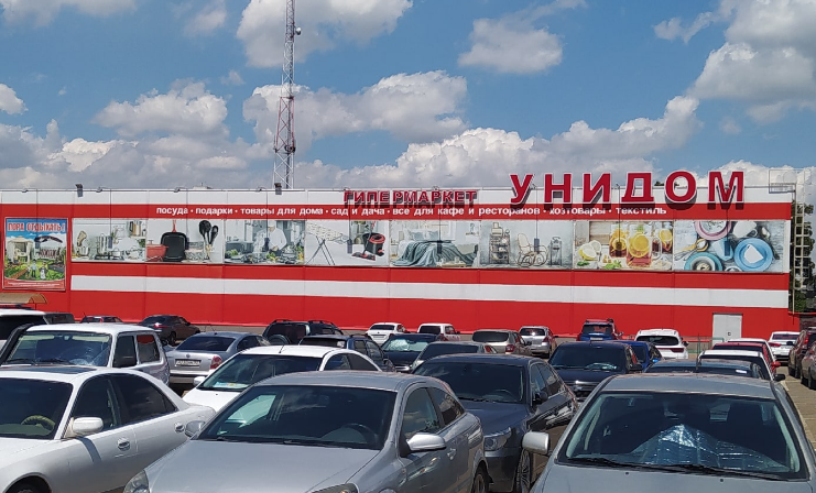 Доброго всем времени суток, как-то на днях мы прогуливались по району и наткнулись на вот такой гипермаркет. Раньше мы его как-то не замечали, а может его недавно построили, но нас привлекла реклама, что сковородки там были по 80 рублей и посуда дешёвая, вот мы и заглянули.