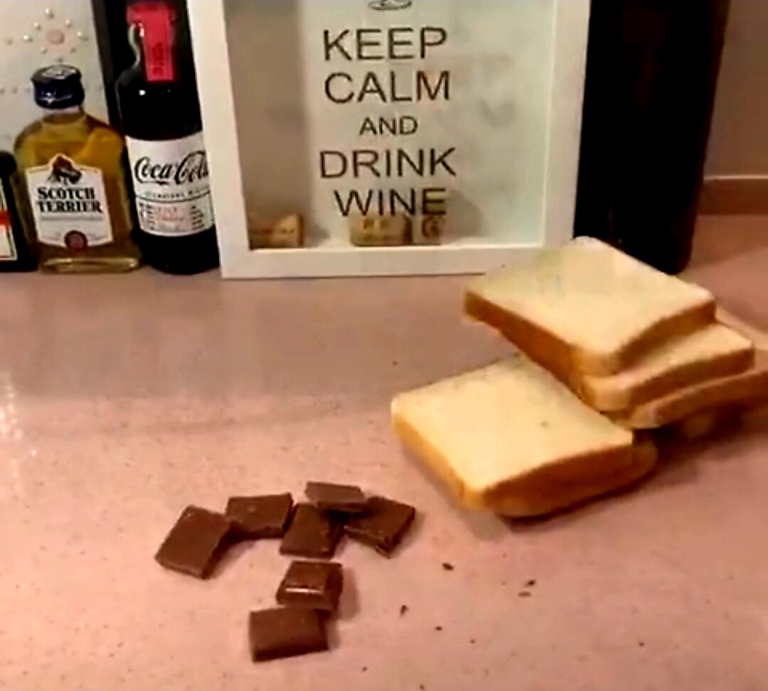 Хочется чего-нибудь вкусненького к чаю, а печь пирожки долго и не хочется возиться с начинкой? Не проблема. Для вкусняшки понадобится тостовый хлеб и шоколад, какой больше нравится, ну или какой на акции😉 Ломаем шоколад на квадратики Далее берём кусок хлеба и кладём дольку шоколада на хлеб, примерно так, как на фото: Далее, складываем ломтик хлеба пополам в треугольник и стаканом или кружкой "отрезаем" мякоть, внутри которой шоколад Получается вот такой "пельмешек" "Лепим" столько "пельменей", сколько душе угодно, ну или пока шоколад не закончится😉 Далее разогреваем сковороду и наливаем в нее немного масла Вываливаем наши сладкие пельмешки на сковороду и жарим до золотистой корочки с обеих сторон Посмотрите, какая красота получается Остатки хлеба тоже пускаем в дело. Нарезаем кубиками или ломтиками, посыпаем солью, специями, паприкой - что больше нравится. И в духовку, разогретую до 185 градусов, на 10 минут. Получаем домашние сухарики. Быстро, вкусно и минимум затрат. Приятного а