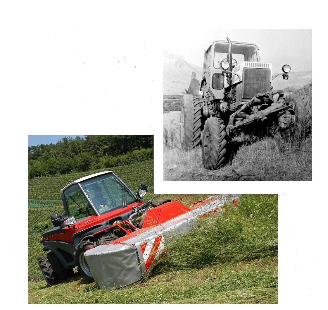 Задача быть не опрокинутым является наиболее важной. Самый лучший способ достичь этого это не пытаться стоять вертикально на склоне, как это делал МТЗ-82К. Такое решение технически сложно и удорожает конструкцию. Эффективней всего занизить центр тяжести машины. Как это выглядит можете увидеть на примере Aebi TT240.