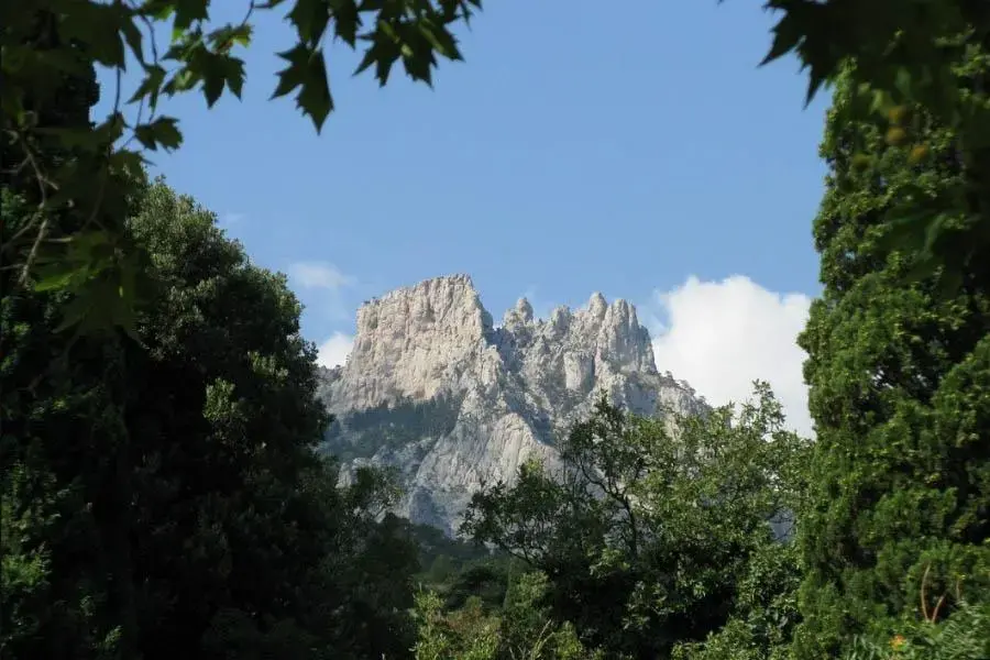 Ай-Петри возвышается над уровнем моря на 1234 м. Её главная вершина состоит из множества краеугольных выступов, которые образовались в результате тысячелетнего процесса эрозии и выветривания скальной породы. Четыре самых крупных зубца высотой 60-80 м образуют на вершине скалы величественную каменную корону.