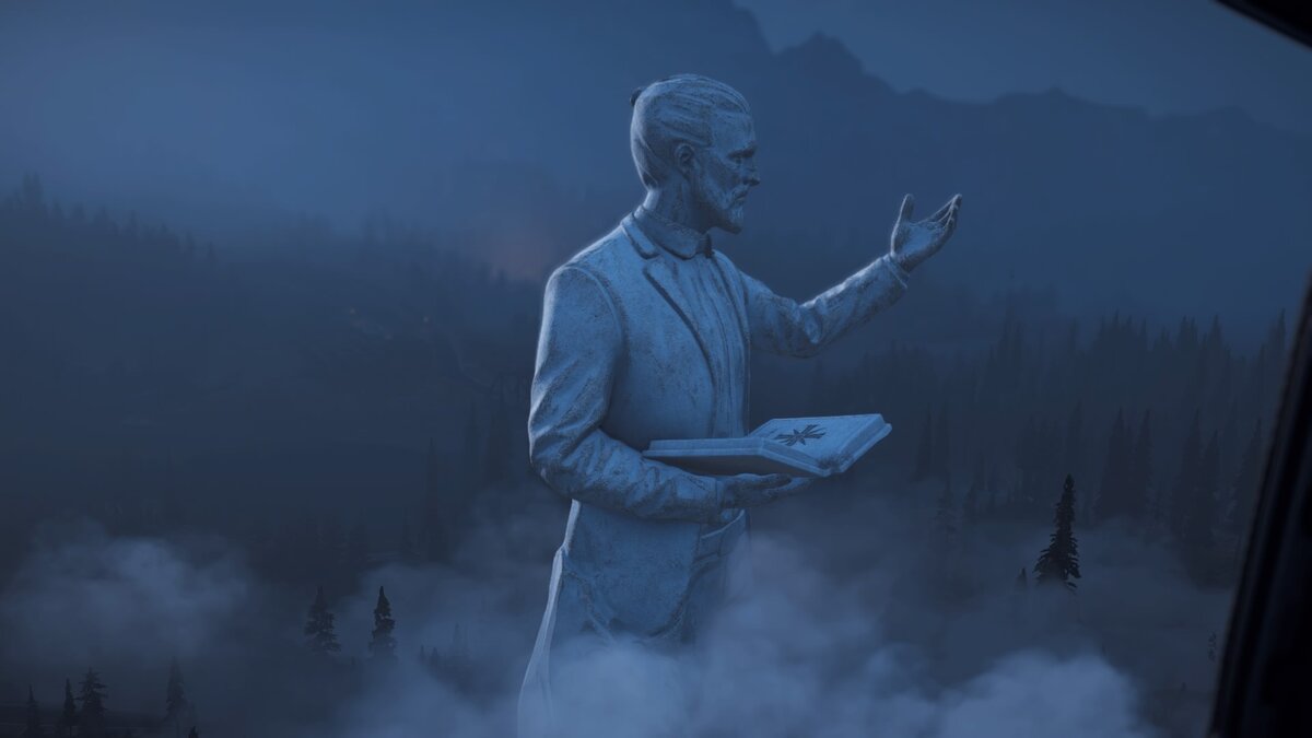 Видите ли, теперь продвижение по истории происходит не по мере выполнении сюжетных миссий, а по захвату территорий. Всего нам придется освободить три района, каждый – под контролем одного из “Вестников”. Успешная подпольная деятельность заполняет шкалу сопротивления, и у этой шкалы есть три деления. По достижении каждой жизнь становится сложнее – то самолеты начнут вас разыскивать, то патрулей на дороге станет больше. Но самое главное – как только прогресс дойдет до первого деления, вас ожидает встреча с главной районы. И в этом таится главная проблема. Да, все злодеи получились харизматичными, у каждого отличается подход к проповеди, никто из них не хочет смерти главного героя, а ожидают от него принятия веры, поэтому и напряжение от этих сцен намного выше. Но так будет, пока вы не освободите первую зону. После этого игрок точно знает, когда ожидать очередной встречи с членом семьи, и от этого просто-напросто пропадает элемент неожиданности. Как итог – полноценного повествования в игре нет. Есть отдельно завязка, кульминация, развязка, но развитие ну никак не ощущается. Серьезная ли это претензия? На самом деле нет. Вспомните четвертую часть – там ничего, кроме завязки и сюжетного поворота за пять минут до конца игры не запоминается, потому что Пейган Мин появлялся мало и как личность он никакого интереса не вызывал. К концу же пятой части я могу гарантировать, что хотя бы один из злодеев вызовет у вас сопереживание, так как здесь мотивация лучше прослеживается.