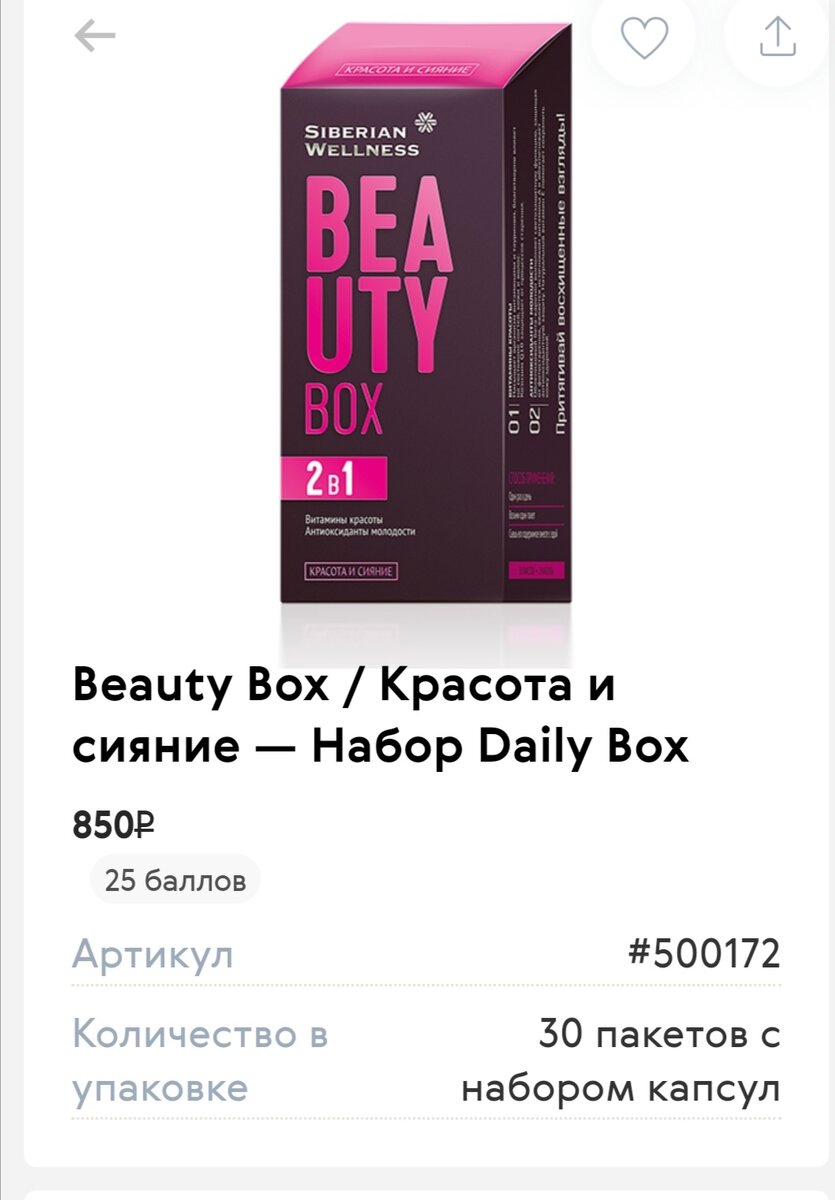 Для того чтобы кожа, волосы и ногти выглядели на все 100%, недостаточно только косметических средств. Твоему организму требуются витамины и антиоксиданты, необходимые для поддержания красоты! Сибирское здоровье представляет комплекс витаминов и антиоксидантов для поддержания женской красоты. 12 витаминов в составе средства дарят энергию, коэнзим Q10 обеспечивает защиту от старения. Таурин, бета-каротин и витамин Е делают кожу красивой, а волосы – шелковистыми и блестящими. ВeautyBox – это 30 пакетиков на каждый день! • Энергия и хорошее самочувствие: 12 основных витаминов. • Защита от старения: коэнзим Q10. • Красивые волосы и кожа: таурин, бета-каротин и витамин Е. Купить комплекс можно здесь