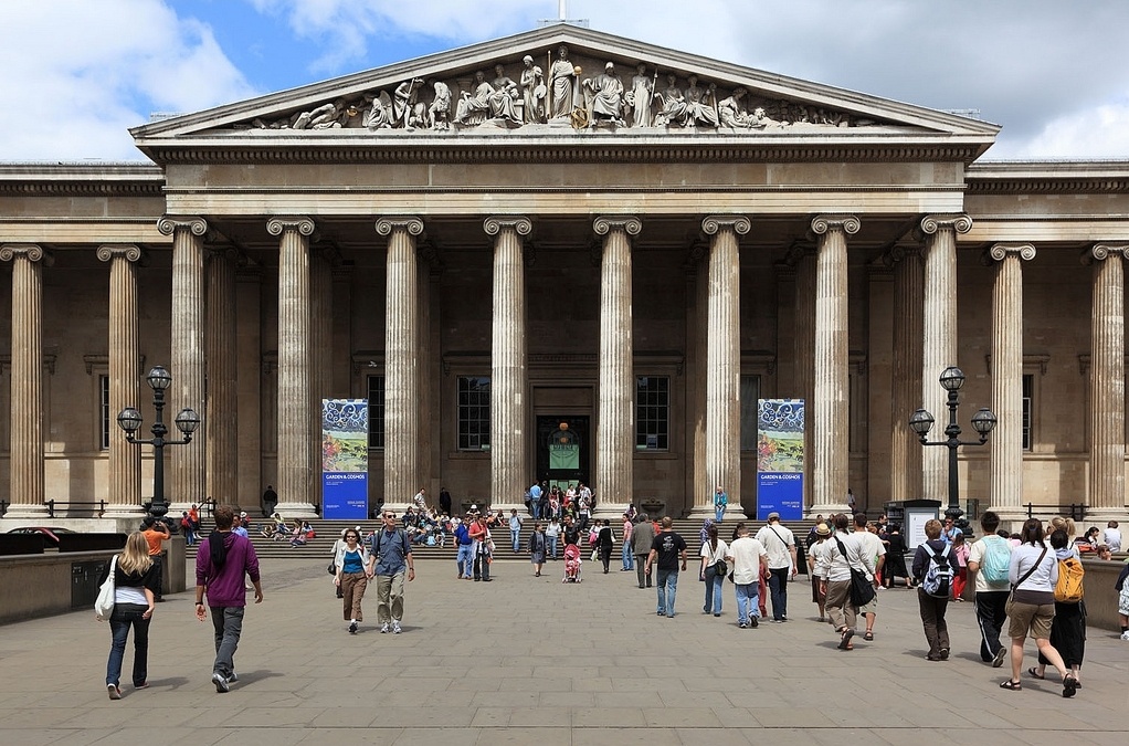 Как я уже писал, основная фишка архитектора Нормана Фостера - это способность наполнять внутренние объемы дневным светом. А еще Фостер не раз говорил, что на него оказал сильное влияние инженер Владимир Шухов, да, тот самый, который придумал конструкцию башни из гиперболоидных стальных секций (сама известная башня Шухова - башня радиоцентра на Шабловке). Хотя Фостер мог это и не говорить, так как по многих его проектам это хорошо видно. Но вернемся к дневному свету, он ведь в любом помещении важен, а уж в музее и подавно. На фото главный вход в Британский музей, здание музея построено в 1823-1847 годах в стиле классицизм архитектором Робертом Смёрком. Но к концу 90-тых стало ясно, что справляться с огромным наплывом туристов инфраструктуре музея стало практически невозможно. Не хватало туалетов, места для сувенирных лавок, пунктов общественного питания, экскурсионного бюро, да и просто пространства. В итоге, было принято решение о перекрытии внутреннего двора крышей и постройки