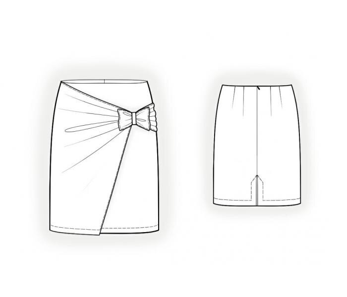 9. Нижний срез юбки обметать, заутюжить на изнаночную сторону и настрочить швом 3.0 см согласно техническому рисунку, закрепляя обтачку.