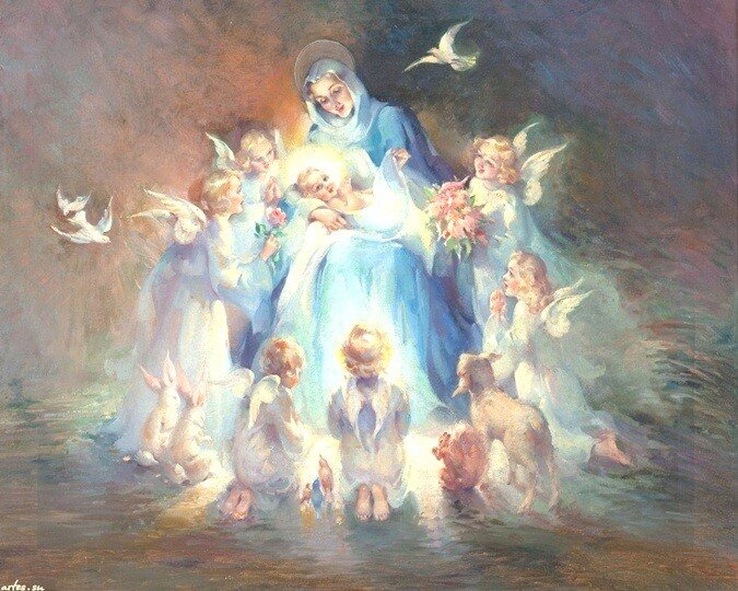 Спускались сумерки на землю, И дерева, казалось, дремлют. Умчится солнце за кордон, Как шаль окутает их сон. А вот на небе эйфория, Зажгла звезду сама Мария, Звезду - наперсницу свечи, Что будет нам светить в ночи. Ведь день рождения не суд, И гости скоро к ней придут, И стол возник, как вешний сад, Марии радующий взгляд. Пробили полночь и часы, Купель из подлинной росы, Вспорхнули быстро ангелочки, Расселись чинно в уголочке. Дым растекался благовоний, И час ей виделся агоний, Жестокий пафос Иеремии Возник пред взором у Марии. Вошёл Христос в своём халате, Шитом серебром на злате, Небесным знаком мудреца, Он пригласил войти Отца, Сказать правдивей, сразу двух – Вошёл Господь и Святый Дух. Господь пожал Марии руки: «Забудь, прекраснейшая, муки, Ты родила Бога земли, Чтоб люди чтить Его могли». А Святый Дух, без дара речи, Легонько обнял Её за плечи, И этим дал Ей то понять – Святая Роженица-Мать. И поклонилась Она в пояс, За жизнь, за мир не беспокоясь, И удалилась, неся свет, А Сын