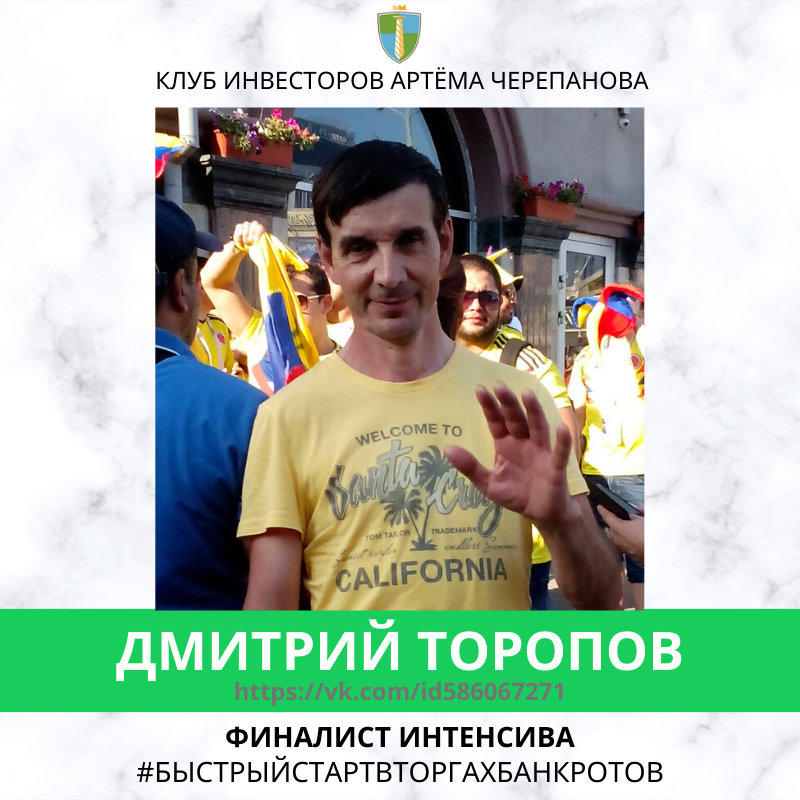 Финалист интенсива «БЫСТРЫЙ СТАРТ В ТОРГАХ БАНКРОТОВ» — Дмитрий Торопов стал победителем торгов. Совсем свежий протокол вышел ещё при старой Конституции. Классный результат уже на 3-ем месяце знакомства с торгами! Всё сделано удаленно через интернет. Успехов в продаже! #кейссторгов #бстб #быстрыйстартвторгахбанкротов