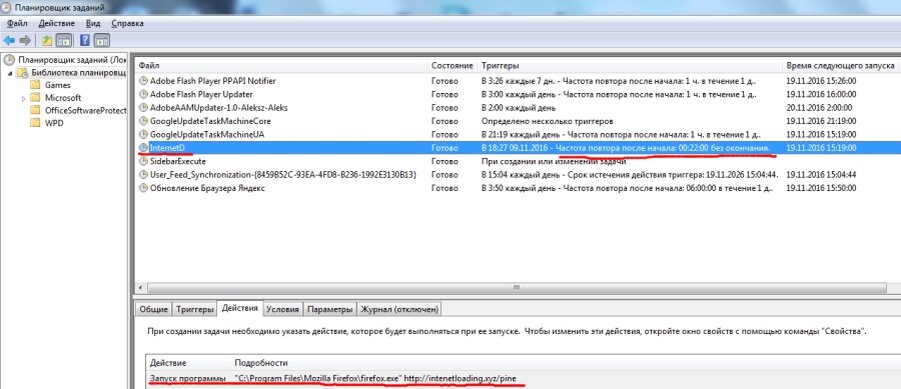 Дальше стал думать, чё делать. Пришёл к выводу, что надо бы найти такую программу, которая подсказала бы, какие файлы на компьютере запускались. Ведь запуск рекламы — это запуск какого-то определённого файла. И такая программа нашлась — ExecutedProgramsList (ссылка). Запустив её, я стал ждать, когда появится очередное окно с рекламой, чтобы засечь запуск нужного файла. И вот, минута X настала! Во время запуска рекламы сработал файл «C:\Windows\System32\taskeng.exe». Полез в гугл смотреть, что за файл такой. Но он оказался обычным системным файлом. Заражён? Кто его знает, всё может быть. Но тут мой взгляд упал на другой файл — taskschd.msc. Ну, точно, это же планировщик задач Windows! Полез туда, и что бы вы думали, обнаружил там созданную задачу по запуску рекламы каждые 22 минуты.