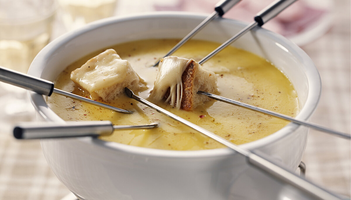 Предлагаю вашему вниманию рецепт классического сырного фондю. На собственном опыте убедилась, что на переваривание этого блюда организм тратит больше калорий, чем получает с ним! Таким образом, информация о тяжести этого блюда и его отрицательном эффекте для фигуры сильно преувеличена. "Фондю"переводится с французского как "растаявшее" или "расплавленное". Приготовьтесь и вы таять и плавиться от удовольствия... Ингредиенты Время приготовления: 40 минут Количество порций: 3 Рецепт Для приготовления фондю необходимо наличие керамической или чугунной фондюрницы в комплекте с металлической подставкой и горелкой снизу.
