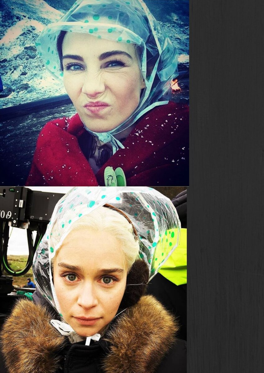 Актеры тоже люди, и во время съемок масштабного проекта Игра Престолов развлекались как могли. Об этом свидетельствуют фотографии, которые они выкладывали в свои соц сети. Чепчик путешественник А зима и действительно близко Стоп, снято Так же как и в сериале Эмилия любит своих драконов, пусть и не настоящих Практика йоги очень полезна. Снимаемся и практикуемся, снимаемся и практикуемся... А вот и Непреступная стена, которая в общем-то и не такая уж непреступная Стоп, снято дубль два Арья водолаз Не эту же самую кружку держит Эмилия, которая случайно попала в финальную серию сериала? Интересный факт, для того чтобы снять как новорожденный дракон кричит, использовали крик черепахи