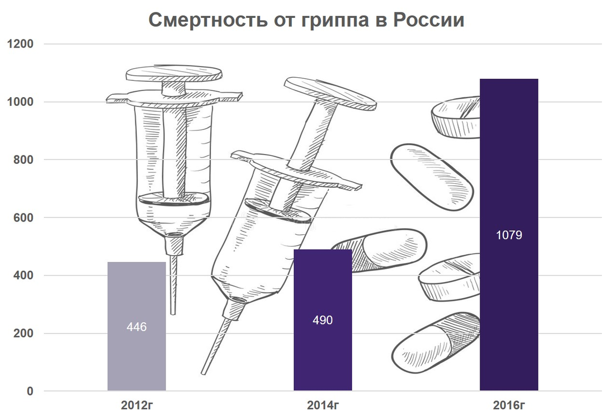 Коронавирус часто сравнивают с гриппом — оба респираторные заболевания, оба передаются воздушно-капельным путем, оба могут привести к осложнениям. Но насколько смертелен грипп? Ежегодно в мире от гриппа умирают около 650 тысяч человек. В России, как правило, заметно меньше тысячи, но так как каждый год вирус немного мутирует, то и и показатели меняются. По официальным данным самый смертоносный был грипп в 2016 году — тогда от него погибли 1079 человек по всей стране. А в 2012 году — «всего» 446 человек. При этом в декабре 2016 года в одной Москве было примерно на 80 смертей в день больше, чем в «обычный» год. В среднем же зимой в Москве и так в среднем на 50 смертей в день больше, чем летом. Если все цифры просуммировать, то получится, что только в столице в тот месяц умерли «лишние» 2-2,5 тысячи человек. Для сравнения: в Москве коронавирус в апреле привел к увеличению смертность в среднем на 75 человек в день, а в мае — на 175 человек в день.