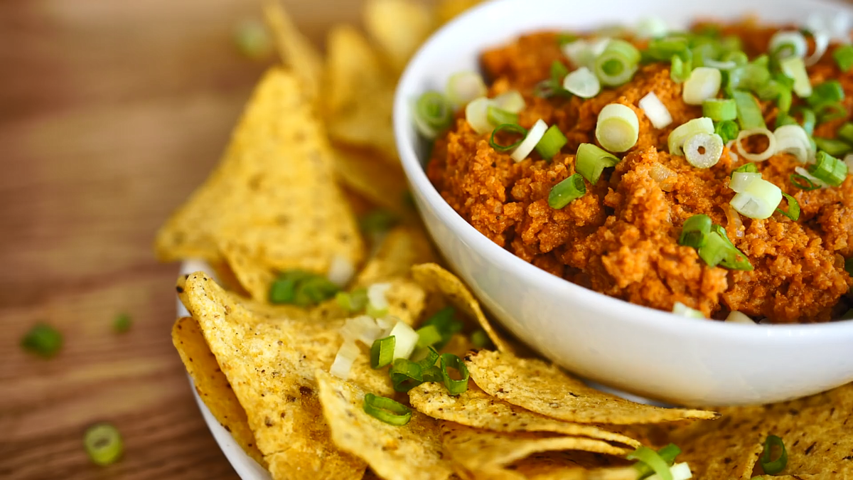 Чипсы начос принято есть с соусами вроде гуакамоле, сырного или сальса. Сегодняшний рецепт чем-то напоминает сальса, но все немного иначе. Основой будет соевый фарш. Пойдемте готовить.