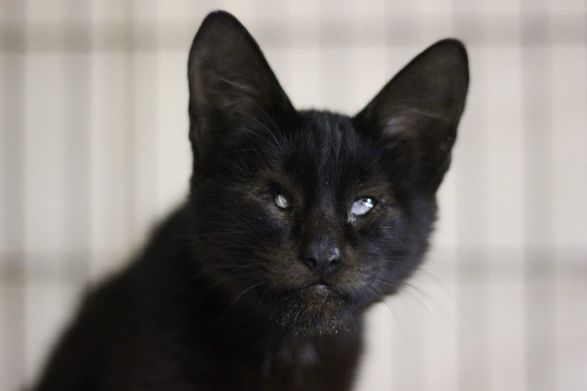Больно даже переставить, с каким трудом она выживала с серьезными особенностями зрения на улице.Чанга была не нужна целому миру. Ведь кому нужен маленький неприметный черный котенок, который даже не может видеть? У Чанги врождённый порок развития глаз, оба глазных яблока уменьшены в размере, а правый не видит ничего. Зрение частично сохранено только у левого глазика, это не требует специального лечения, но постепенно зрение Чанги будет утеряно навсегда. Это необратимые последствия. И мы так боимся, что последнее, что Чанга увидит - это клетка приюта.