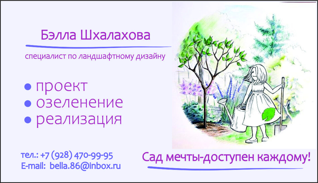 Все мечтают организовать свой свой маленький сад мечты,или с нуля сделать планировку участка ,но всегда боятся обращаться к проффесиналам,думая,что это будет стоить баснословных денег,во многих случаях это так и есть. Но я как специалист по ландшафтному дизайну с 15 летним опытом ,могу предложить Вам свои услуги, за минимальную плату,при этом вы тоже ,принимаете минимальное участие. Удалённо или по видео связи ,я могу проконсультировать по всем интересующим вопросам: планирование участка с нуля,планирование на действующем участке определённых зон,подбор посадочного материала,расчётная стоимость и т.д.,ну и конечно же его реализация. С огромным удовольствием жду Ваших комментариев, вопросов и звонков.