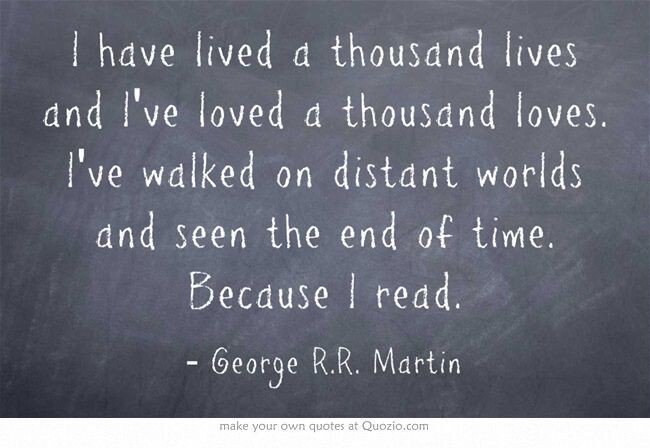 Привет Читатель. Надеюсь, тебе будет интересно. Не ругай меня сильно за грамматические ошибки, грамматика - не сильная моя сторона. Я хочу немного порассуждать о книгах и чтении. Что такое книги? Каждый может ответить по-своему. Для меня книги - целый огромный мир, в который я всегда с удовольствием окунаюсь с головой. Я живу вместе с их персонажами, радуюсь и плачу, борюсь и умираю. Я привожу здесь эту цитату не по причине большой любви к книгам Дж. Мартина. Его книги я не люблю совершенно. Но слова эти полностью описывают моё отношение к чтению. Тот, кто читает, успевает прожить множество жизней, пока другие живут свою одну. Согласна с каждым словом на картинке. Кстати, есть здесь кто-нибудь ещё такой же? Друзей помешанному на книгах человеку найти непросто, в основном мои друзья на страницах, в главах, среди печатных букв. Не всех героев с этой картинки люблю, не всех знаю. Но смысл понятен. Есть надеюсь люди, которые не заскучали с первого обзаца моей статьи и сумели дочитать