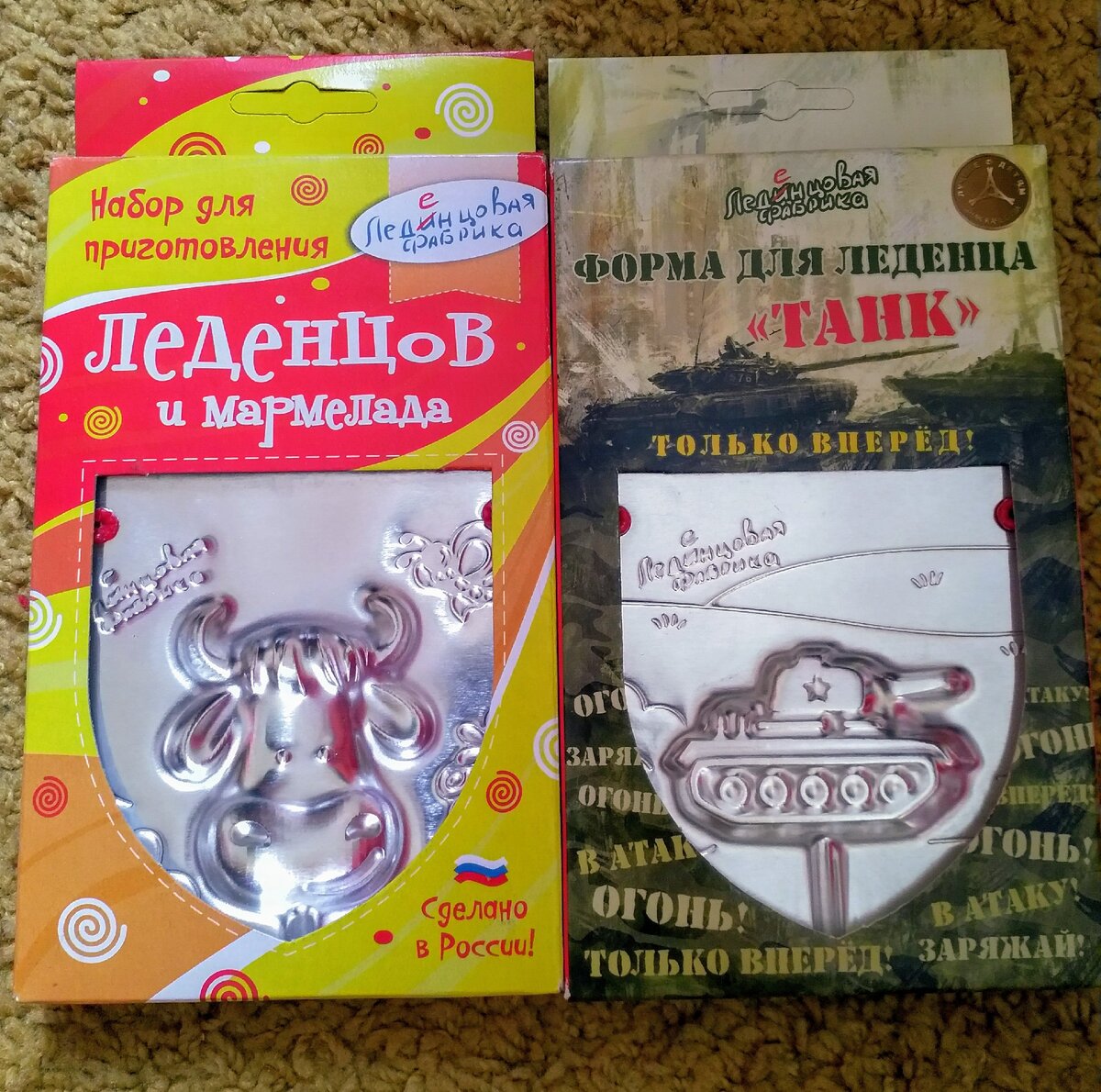 У меня леденцы на палочке, всегда ассоциируются с детством. Захотелось и у ребенка развить такие ассоциации. Как мама аллергика, я особо не доверяю магазиной продукции (к сожалению не всегда указаны все ингредиенты из которых сделан продукт или они могут попасть случайно на производстве), поэтому решила сама сделать леденец. Для этой цели я приобрела формочки для леденцов в виде танка и головы коровы от производителя "Леденцовая фабрика". Делюсь рецептом и впечатлениями. Приготовление: Смешиваем в чашке сахар и воду. Ставим на огонь (немного выше среднего, у меня на индукции 6). Перемешиваем Когда сироп закипит, добавляем столовую ложку лимонного сока. 1 раз тщательно перемешиваем. После закипания не перемешивайте, иначе будет много пузырьков в готовом леденце Ждём, когда появится густая пена, масса начнёт приобретать карамельный цвет , появится карамельный запах (ориентировочно 10 минут). Проверяем готовность: капаем капельку карамели в холодную воду, она должна застыть. Слегка смаз
