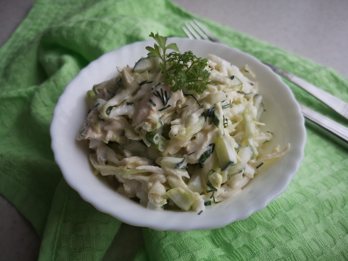 Очень простой в приготовлении и при этом вкусный, свежий и хрустящий салат.