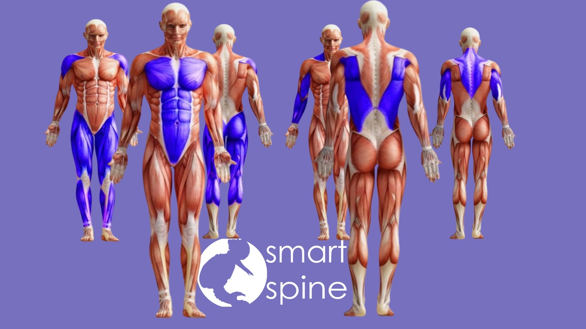 Чем бы вы ни занимались, тренировки должны быть разнообразными. И разнообразными не в контексте “каждый день новый искрометный комплекс упражнений”, а в контексте проработки всех мышц. Если вы хотите именно похудеть, вам будет полезна наша статья: Совет тренера: как худеть с помощью тренировок? Тщательно переработанная информация из всевозможных книг, лекций и семинаров, переведенная на человеческий язык доступна по хэштегу #smart_spine_теория . Просто перейди по ссылке и открой нас в Инстаграм, там еще больше интересного! Когда в начале пути я работала тренером в зале, мне приходилось замечать, как потрясающе уверенные в себе люди “закачивают” только одну группу мышц (это в лучшем случае, иногда и просто уделяя внимание одной мышце) осознанно или не очень, рискуя своим здоровьем. Так вот, уважаемые занимающиеся, если у вас приличный жим, но при этом плечи съехали на грудь, руки развернуты ладошками назад или вообще начала формироваться сутулость — обратите внимание на упражнения для