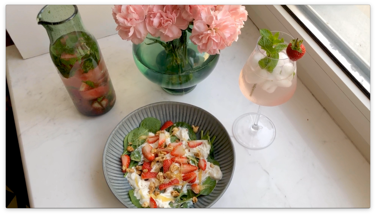Сегодня будет достаточно необычный рецепт - салат с клубникой и сыром страчателла.