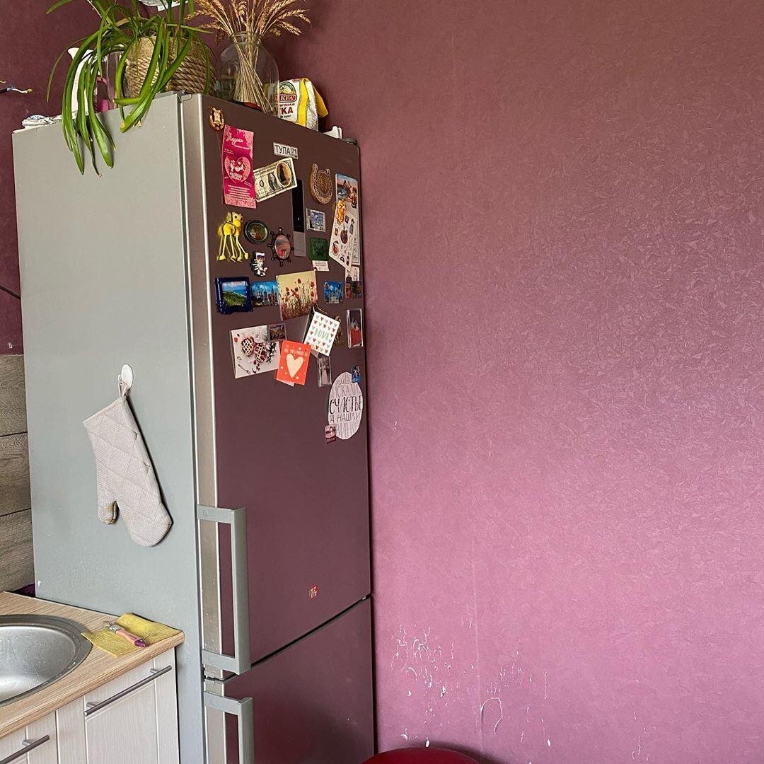До ремонта кухня была не то чтобы в ужасном состоянии, но обновления определённо требовала. Бордово-фиолетовые стены выглядят так себе.
