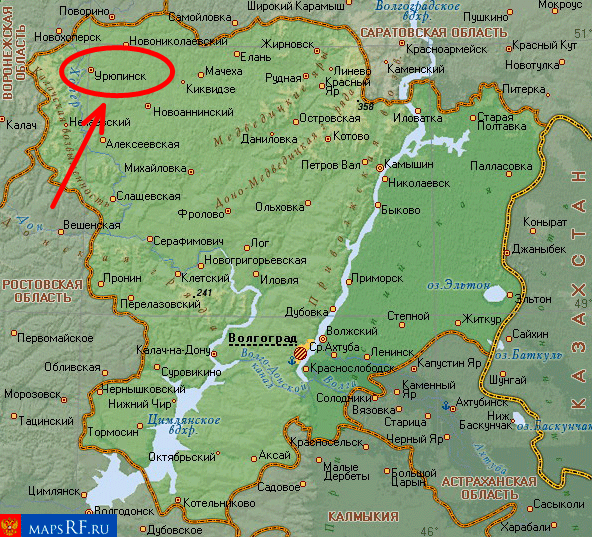 Название Урюпинск давно уже превратилось в имя нарицательное. Урюпинск обычно всегда вспоминают, когда хотят сказать о глухой провинции, маленьком городке в захолустье, при этом многие наверно даже не догадываются, что такой город в реальности существует. Такая традиция пошла после фильма "Судьба человека" по рассказу Михаила Шолохова, действие которой происходит как раз в Урюпинске. Где же находится этот город и что о нём можно сказать интересного? Урюпинск - это административный центр одноимённого района Волгоградской области. Вот где он располагается на карте: Население города 37 тысяч человек. Стоит он на берегу реки Хопёр, одного из крупнейших притоков Дона (о главных притоках Дона читайте прошлый пост). Официальной датой основания Урюпинска считается 1618 год, хотя есть и упоминания некого "Урюпеска" гораздо раньше, даже во времена Золотой Орды. Эти земли между Хопром и Доном известны также как Червлёный Яр и издавна населялись казаками. Из промышленности в Урюпинске есть завод п