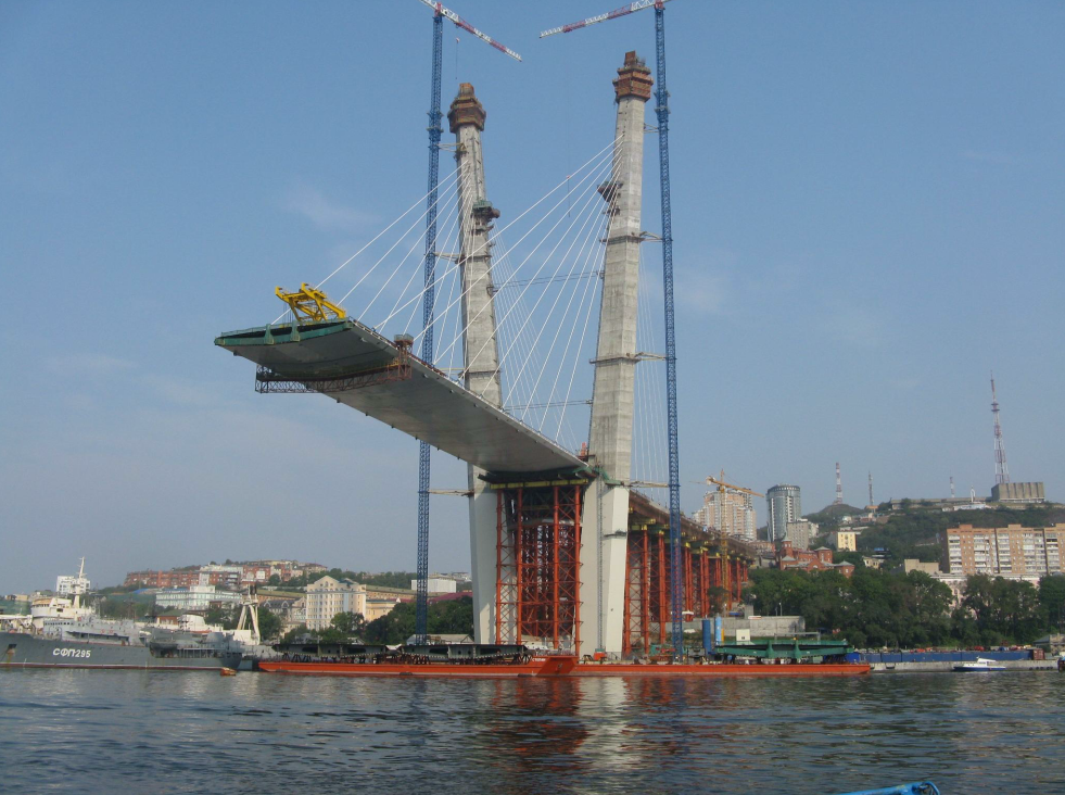Вантовый золотой мост через бухту Золотой Рог во Владивостоке был пущен в эксплуатацию в 11 августа 2012 года. Основной русловой пролет — 737 метров. Параметры вантового моста через бухту Золотой Рог Детально про современные пролетные строения мостов ( https://zen.yandex.ru/media/id/5ce3790a3f91de00b374254b/proletnye-stroeniia-mostov-5db0a840a3f6e400b0fb2a9c ) Про Мосты