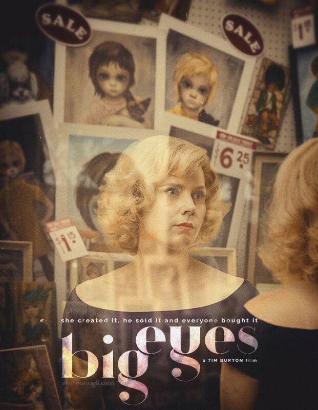 Начнем, пожалуй, с искусства. Я люблю фильмы о творчестве и талантах, вот только все чаще попадаются разочаровывающие (например, уже упомянутая бертоновская «Алиса» или «Одержимость»). История Маргарет Кин на самом деле очень проста. Она становится известной из-за стечения обстоятельств, ведь никаких шансов «попасть в обойму» у нее не было. Более того, когда она попадает туда, ее ранит необходимость лгать и скрываться, а отнюдь не нравы тусовки, в которой критики, журналисты и галерейщики решают, что искусство, а что китч.