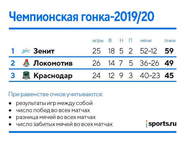 Нужно обыграть «Краснодар». Развязка РПЛ близка – нулевая ничья в матче «Локомотив» – «Сочи» максимально приблизила «Зенит» к чемпионству. Команда Семака может стать чемпионом уже завтра – для этого достаточно обыграть в гостях «Краснодар». Никто в истории РПЛ не становился чемпионом за четыре тура до конца (нельзя сказать про 26-й тур, потому что в сезоне-2011/12 было 44 матча). С 1992-го только «Спартак» в 1993-м стал чемпионом за четыре матча до финиша (тогда было 34 тура). «Зенит» по два раза оформлял титул за три матча (сезоны-2011/12 и 2018/19) и два (сезоны-2010 и 2014/15) до конца сезона, а также выгрызал чемпионство у «Спартака» в 2007-м благодаря вознесению святого Домингеса в последнем туре. Если «Зенит» сыграет вничью в Краснодаре, команде Семака для титула хватит победы над «Сочи» в 27-м туре. MB SPORTS