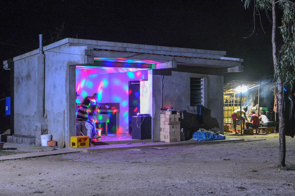 Итак, временная кухня. Шесть вкопанных в землю жердей, на одну из которых навесили кусок кровельного железа (с подветренной стороны). Крыша из сухих листьев пальмы-равеналы. Электричество,