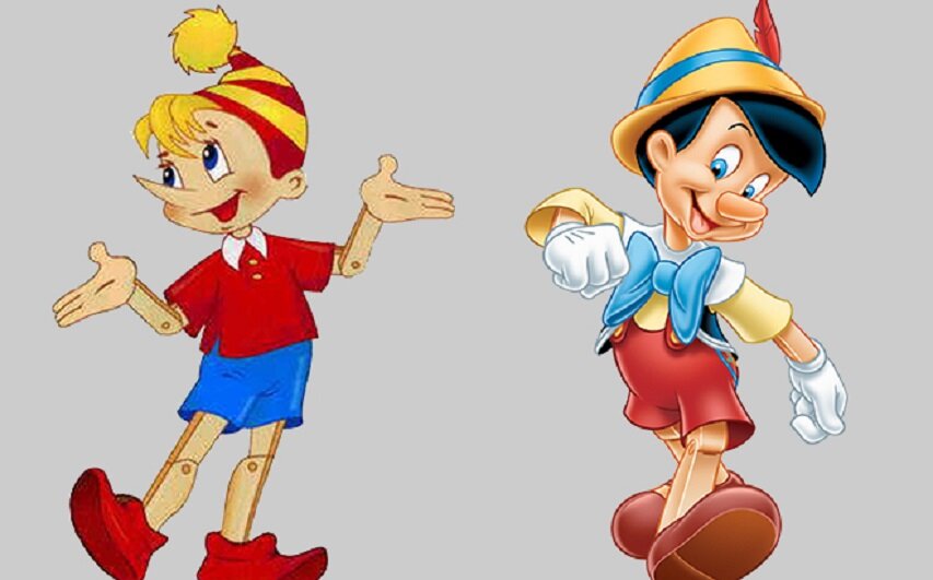 Про Пиноккио узнали гораздо позже и, по-моему, у нас так и не прижился этот герой. Интересно, что такая важная деталь, как растущий от вранья нос у Пиноккио, у Буратино отсутствует. Да и вообще, сказки имеют весьма мало общего. Пиноккио более мрачный и даже какой-то зловещий. В то время как Буратино - веселый, легкомысленный, будто просто обычный мальчик. В детстве у меня была такая книга Толстого: