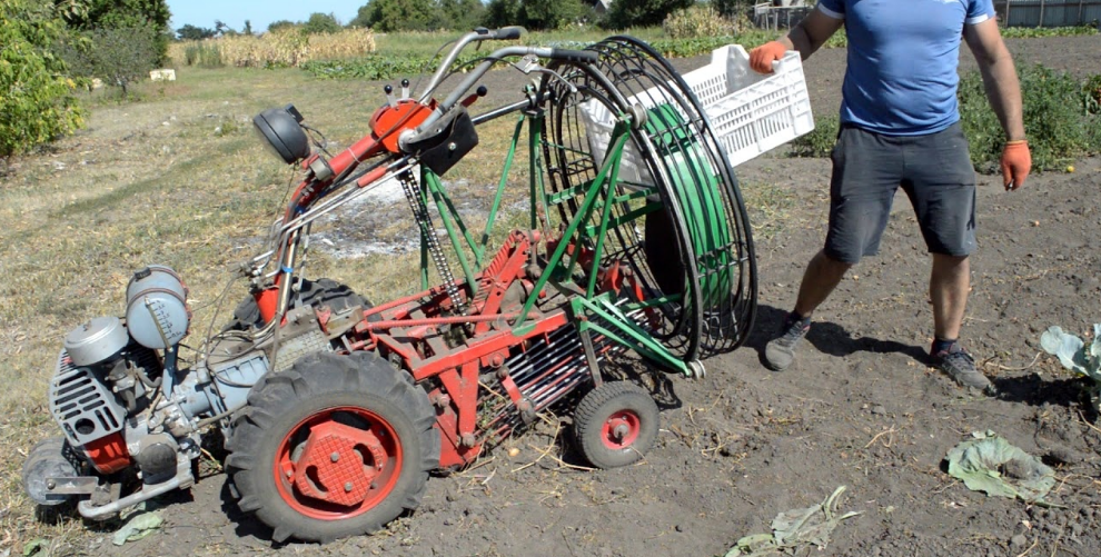 Он усовершенствовал свой мотоблок и создал машину с подающим