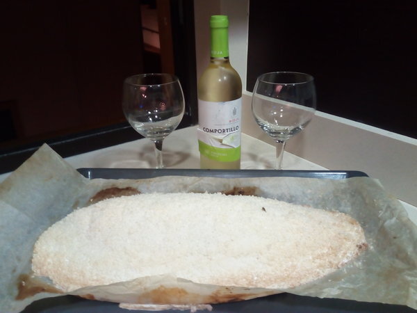 На фото ресторанное блюдо от испанского ресторана в домашних условиях - "Сибас экстрактива по-аликантийски в морской соли" и сибасы с позавчерашней рыбалки (сегодняшних едят симпатяшки голландки). Продолжение следует.....