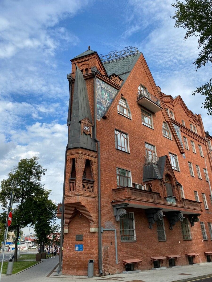 Сказочный терем на Пречистенской набережной, доходный дом Перцовой для одаренных художников, сейчас находится в пользовании МИДа. Как видите, одно из знаковых зданий Москвы начала XX в. не в лучшем состоянии, то и дело отваливаются изразцы от волшебных зверей, сидящих вдоль крыши. То что мы видим сегодня - всего лишь тень изначальной красоты этого дома с золотой беседкой, ажурными решётками, петухами, красивейшей резьбой и росписями внутри, но все равно большая удача, что терем дожил до наших дней, его собирались снести вскоре после сноса Храма Христа Спасителя вместе со всем кварталом, но повезло. Кстати здесь в трехэтажной хозяйской квартире когда-то жил Троцкий. Кстати через одно из окон можно рассмотреть безобразные современные плафоны, не удивлюсь, если там еще омерзительные подвесные потолки в стиле евроремонта. При коммуняках лепнина и фрески были либо уничтожены, либо начисто заштукатурены. А теперь вот современное украшательство подоспело.