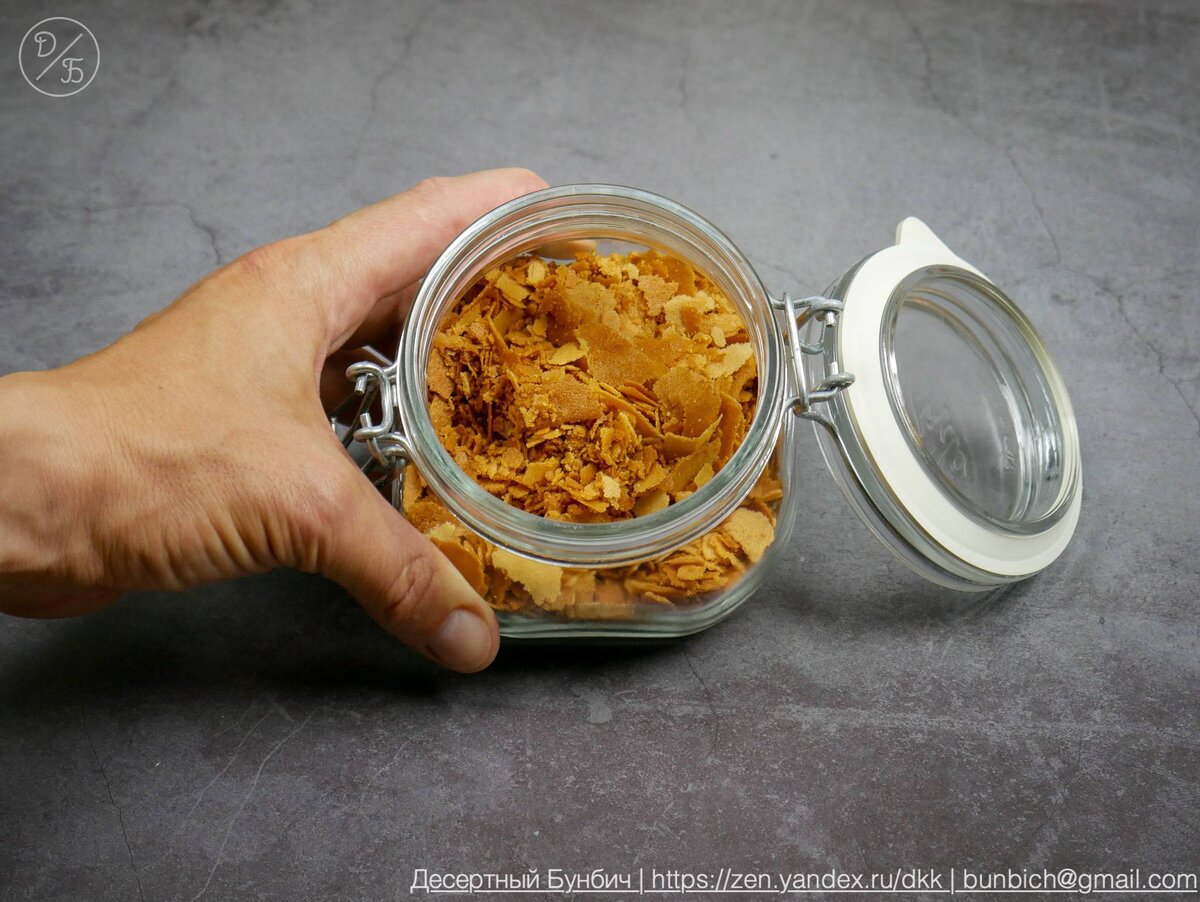 Эту вафельную крошку я готовил, чтобы покрыть медовик Ивлева. Статью пока ещё не оформил, но она скоро появится в блоге. Если не хотите пропустить выход — подписывайтесь на канал!
