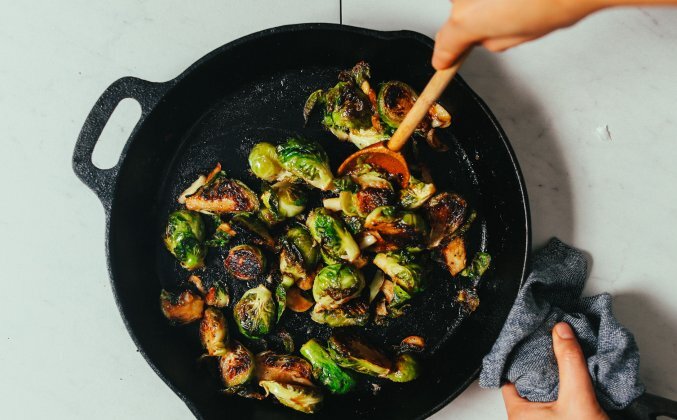 Брюссельская капуста: 500 г брюссельской капусты, снять внешние листья коричневого цвета, большие кочаны разрезаны пополам (или на четверти, если они очень большие по размеру) 2 чайных ложки масла авокадо 3/4 чайной ложки морской соли, плюс еще по вкусу 1/4 ч.л. свежего черного перца 5 целых зубчиков чеснока, без шелухи 30 мл масла авокадо (или другое растительное масло)
