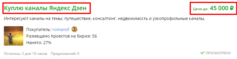 Захожу на одну из бирж поискать заданий для заработка, а там мама дорогая, одни только скупщики каналов Дзен. И если еще пару недель назад предложений о покупке было с десяток, то сейчас каждое третье объявление призывает расстаться со своим или своими каналами Яндекс.Дзен.