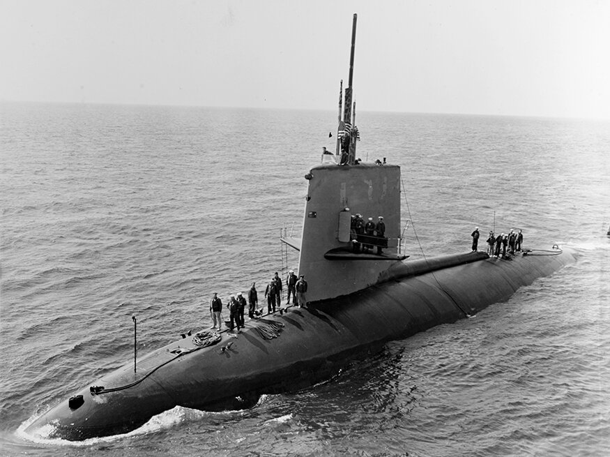 Американская лодка затонула в Атлантическом океане 21 мая 1968 года. Увы, но причины аварии установить так и не удалось, но наиболее вероятно считается взрыв торпеды на борту АПЛ.