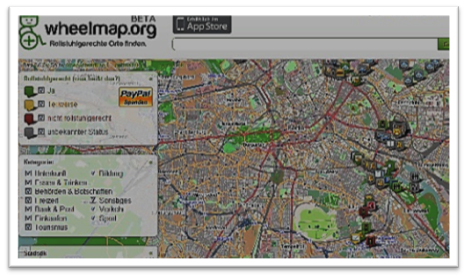 Как сообщает сайт dw-world.de, в Германии запущен проект Wheelmap - интерактивная карта, которая поможет инвалидам-колясочникам передвигаться в городах. На карте помечены музеи, кафе, вокзалы и общественные туалеты, оборудованные подъездами для инвалидов-колясочников.