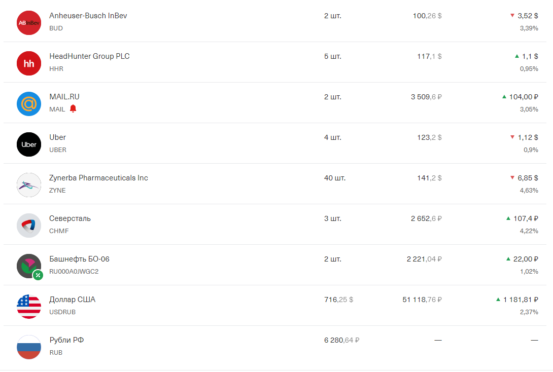 Давно мечтал себя попробовать в инвестициях в ценные бумаги, но все откладывал. Наконец свершилось. Буду вести блог и публиковать свои советы по данному направлению деятельности. Инвестирую я через брокер Тинькофф Инвестиции, уже около 2 месяцев. Изначально сумма была 10.000 рублей, постепенно добавил еще порядка 1000 долларов и 10.000 рублей. На данный момент на моем депозите следующая сумма: 100 165 рублей. и мой портфель выглядит следующим образом. В следующих выпусках я буду подробно описывать все свои сделки, без купюр, в том числе и с просадками. Сегодня я жду открытия биржи. За сим мой первый выпуск завершаю. Дальше будет интереснее.