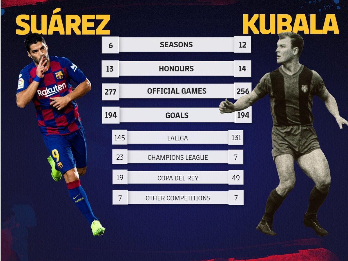 Луис Суарес сравнялся с Кубалой по количеству голов за Барсу