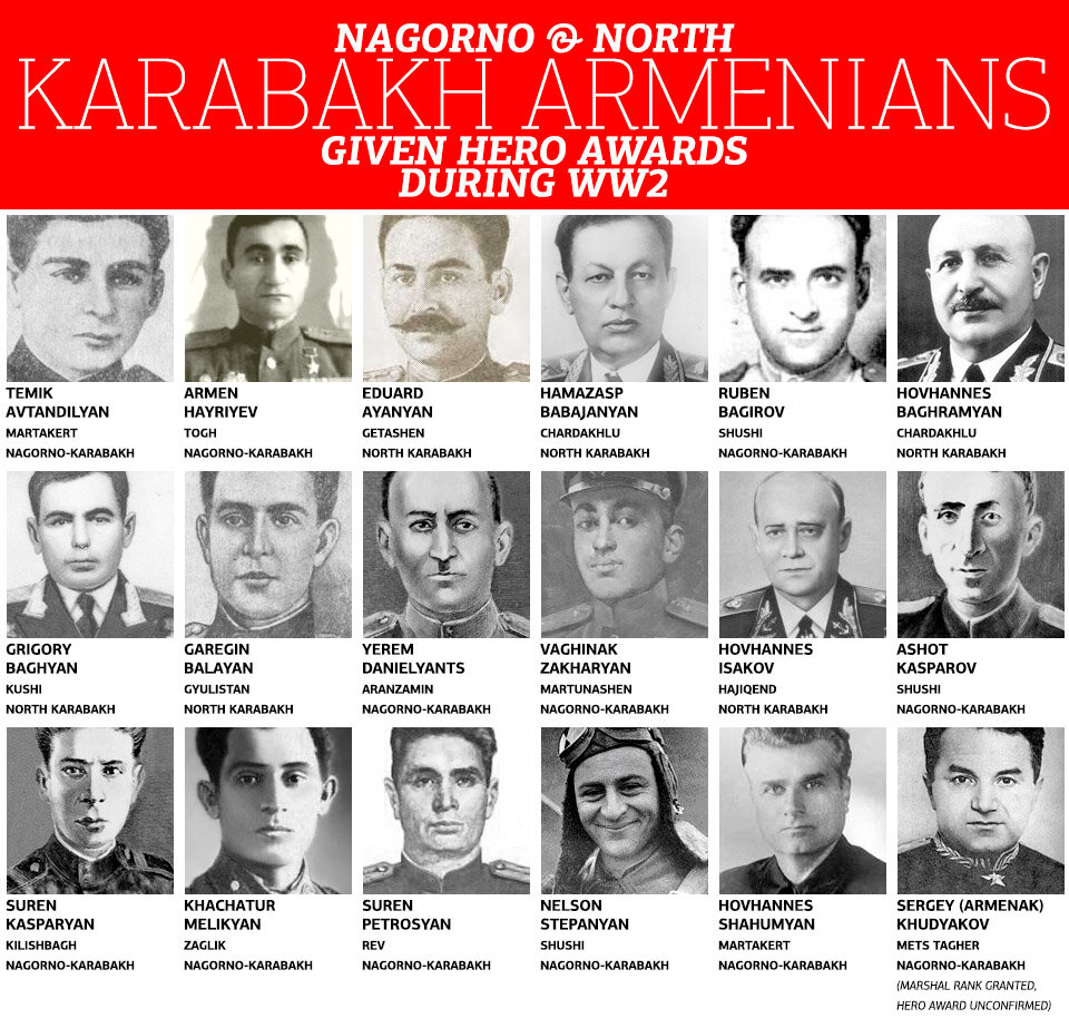 На личности последнего хотелось бы остановиться подробнее. Долгое время считалось, что Сергей Христофорович является русским, так как родился в Астрахани. Однако, армянским историкам удалось установить, что его дед был родом из Арцаха. В годы Великой отечественной войны 24 жителя данной республики стали Героями Советского Союза. Двое из них были дважды удостоены этого звания.