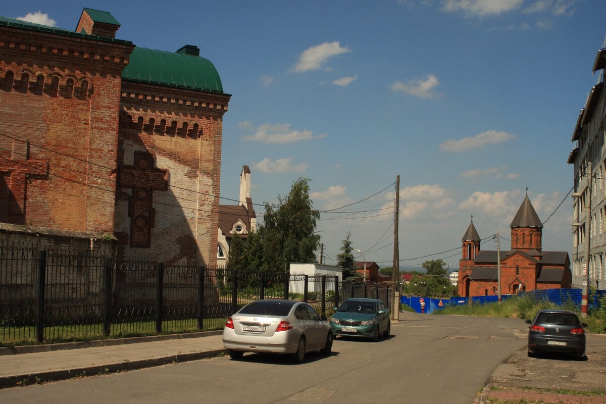 А в 2013 году своеобразную компанию разбавил армянский храм «Аменапркич» (Христа Спасителя). Построен он по всем канонам, в сложившихся архитектурных традициях, да еще и из "родного" туфа - горной породы, появившейся благодаря вулканической активности. Кресты получились "цветущими" - "словно дерево, из которого исходит Божий свет". Собственно, обе общины существовали в городе достаточно давно, чтобы ни у кого язык не повернулся назвать их "понаехавшими". "Аменапркич" вообще является своеобразным "потомком" первого армянского храма в Нижнем - тот стоял на другом берегу, в Ярмарочной части (и его тоже закрыли в 1930-х).