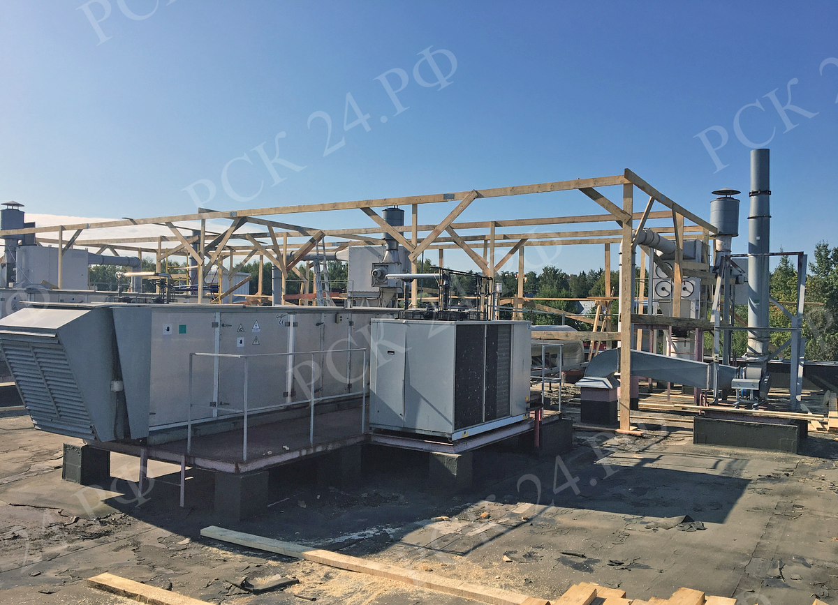 Выполненные работы: устройство временной конструкции над ремонтируемой кровлей, демонтаж старого кровельного пирога до основания, монтаж пароихоляции, утепления, разделительного слоя из геотекстиля, устройство финишного покрытия из ПВХ мембраны Bauder, демонтаж временной конструкции.