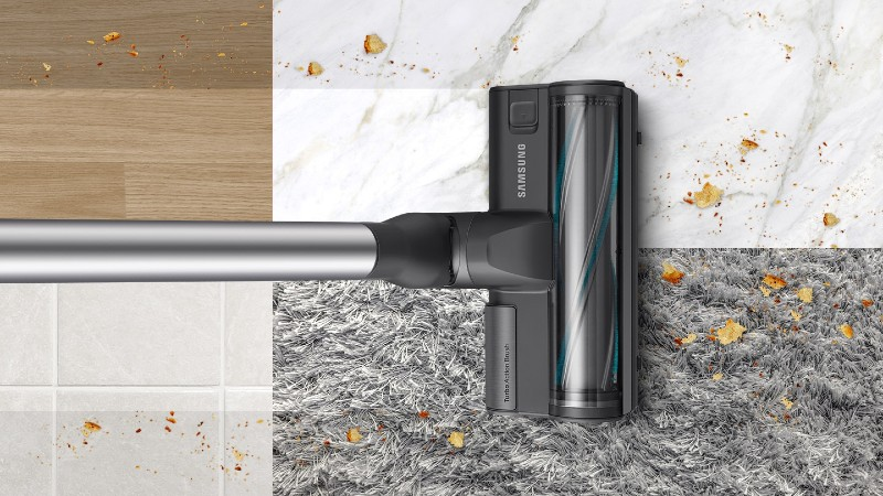 На одном заряде аккумулятора Samsung Jet complete 75 способен проработать до 60 минут в минимальном и до 6 минут в турбо-режиме. Кстати, пылесос довольно тихий и даже при максимальной мощности не будет реветь на всю квартиру. Зарядная станция универсальная — можно как поставить ее на пол, так и повесить на стену.