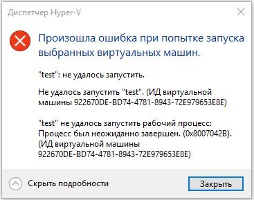 Совсем недавно перестали запускаться виртуальные машины на хосте Hyper-v, настроенном на Windows 10 Pro. Причем перестали запускаться все машины без исключения. После запуска выдавали ошибку 0x8007042B - "Процесс был неожиданно завершен", как на рисунке ниже. В процессе поиска решения этой проблемы я обнаружил, что всему виной Comodo Internet Security Free. Он каким-то образом мешает запуску процессов Hyper-v на операционной системе Windows 10 и после его удаления виртуальные машины стали благополучно запускаться. Интересно также то, что раньше виртуальные машины запускались без проблем и мне не ясно, что же привело к такой ситуации... очередное обновление Comodo Internet Security или недавнее обновление Windows 10.