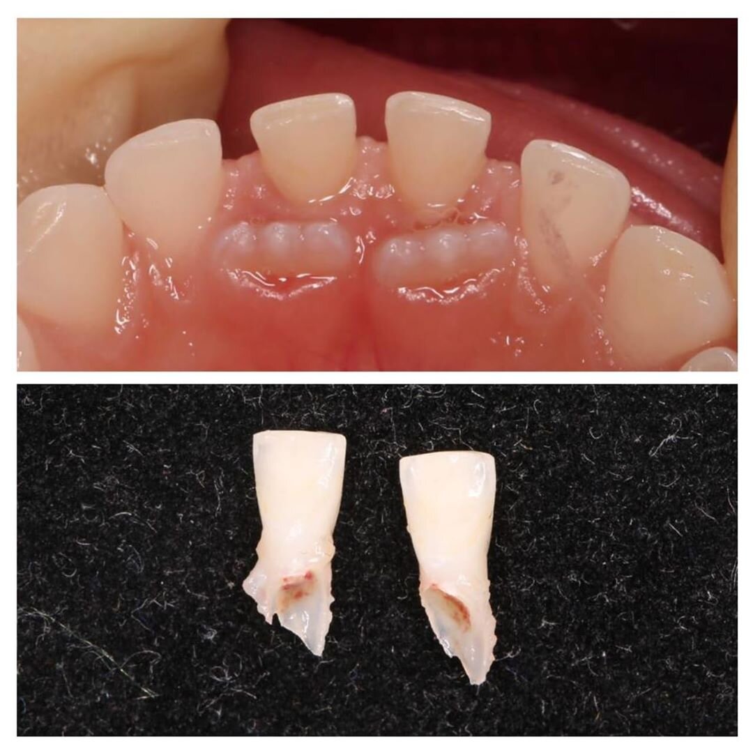 Удаляли принудительно, т.к. корни молочных не рассосались и теперь эти зубки мешают.