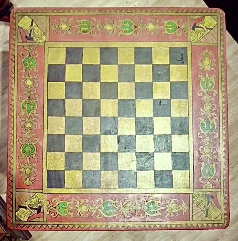 Шахматный столик и табурет - деревянный гарнитур с росписью из нашей коллекции. Хохлома, кустарные мастерские, 20-е гг.⠀